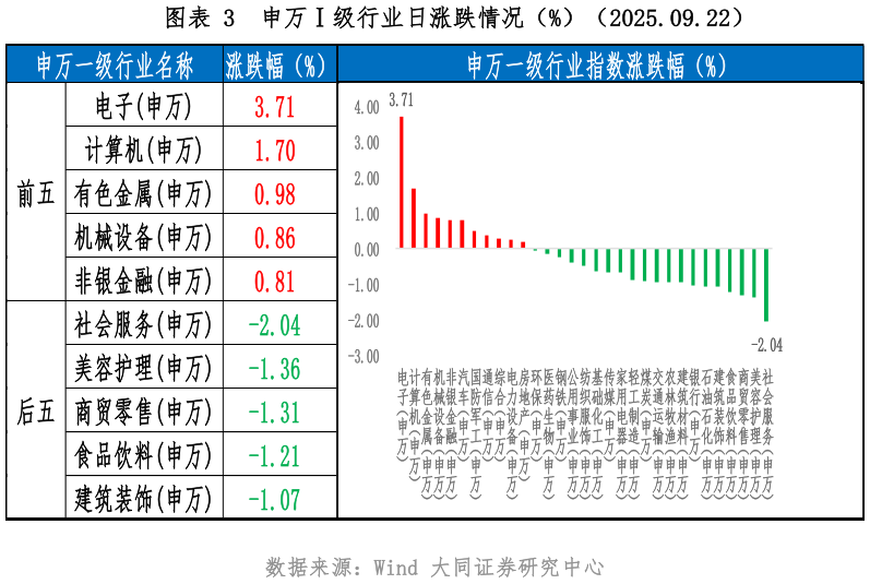> 数据图表想关注一下申万级行业日涨跌情况(%)(2025.09.22)2025-9-1局长李云泽,中国证监会主席吴清,中国人民银行副行长、国家外汇局局长朱鹤新介绍“十四五”时期金融业发展成就,并答记者问。(消息来源:东方财富)大同证券综合其他