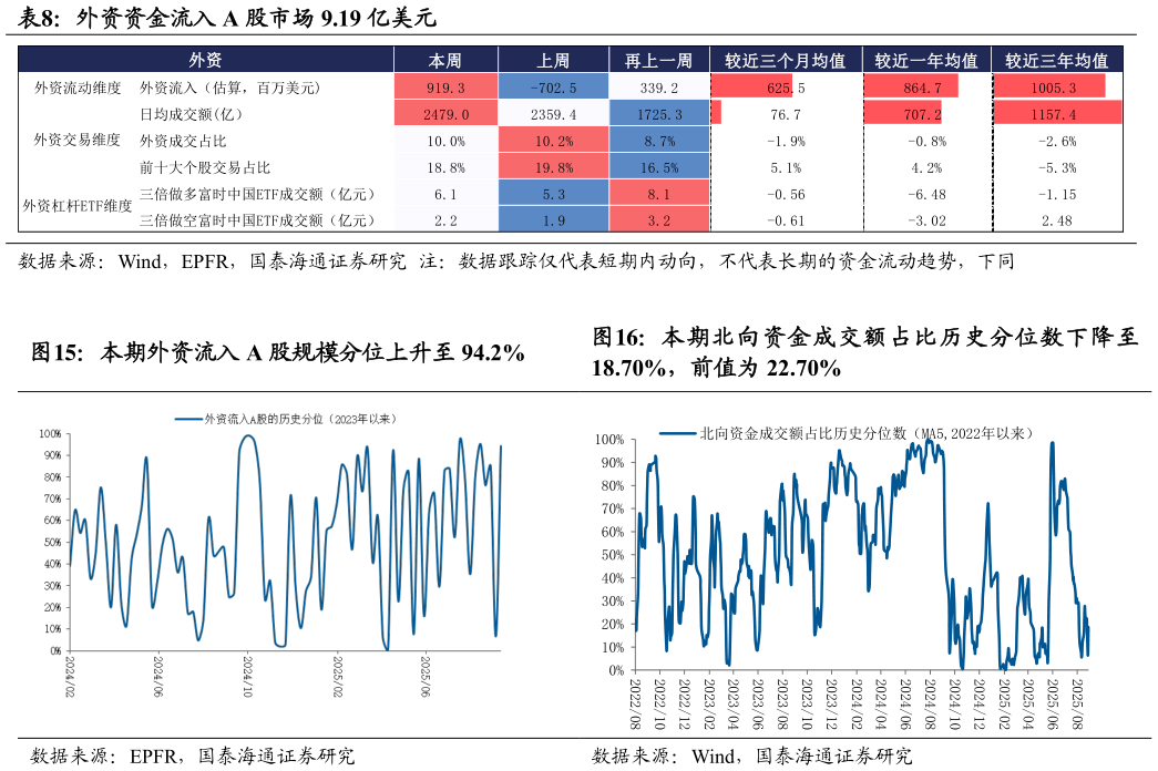 怎样理解外资资金流入 A 股市场 9.19 亿美元 本期外资流入 A 股规模分位上升至 94.2%