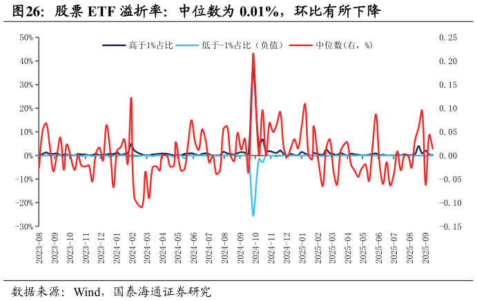 我想了解一下股票 ETF 溢折率:中位数为 0.01%,环比有所下降