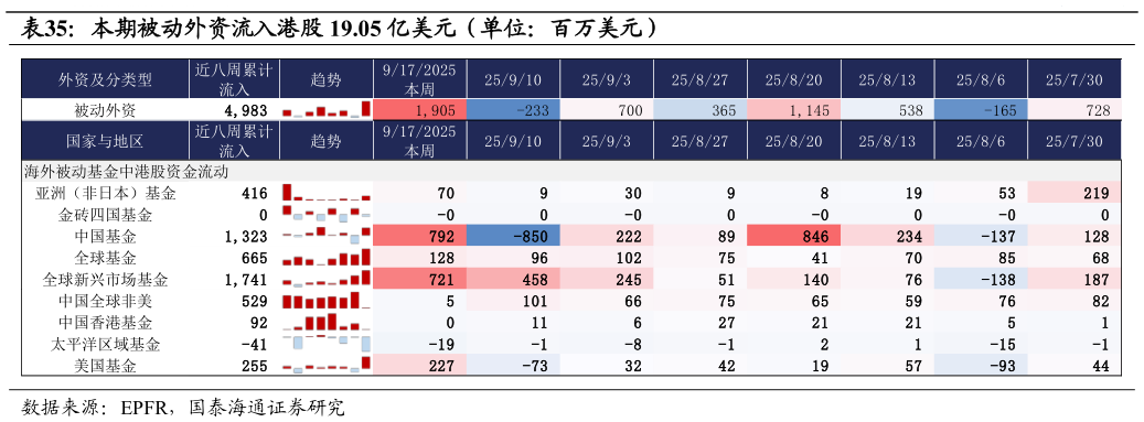 想关注一下本期被动外资流入港股 19.05 亿美元(单位:百万美元)